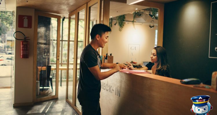 Traveler checking into Wyndham hotel with elite status benefits